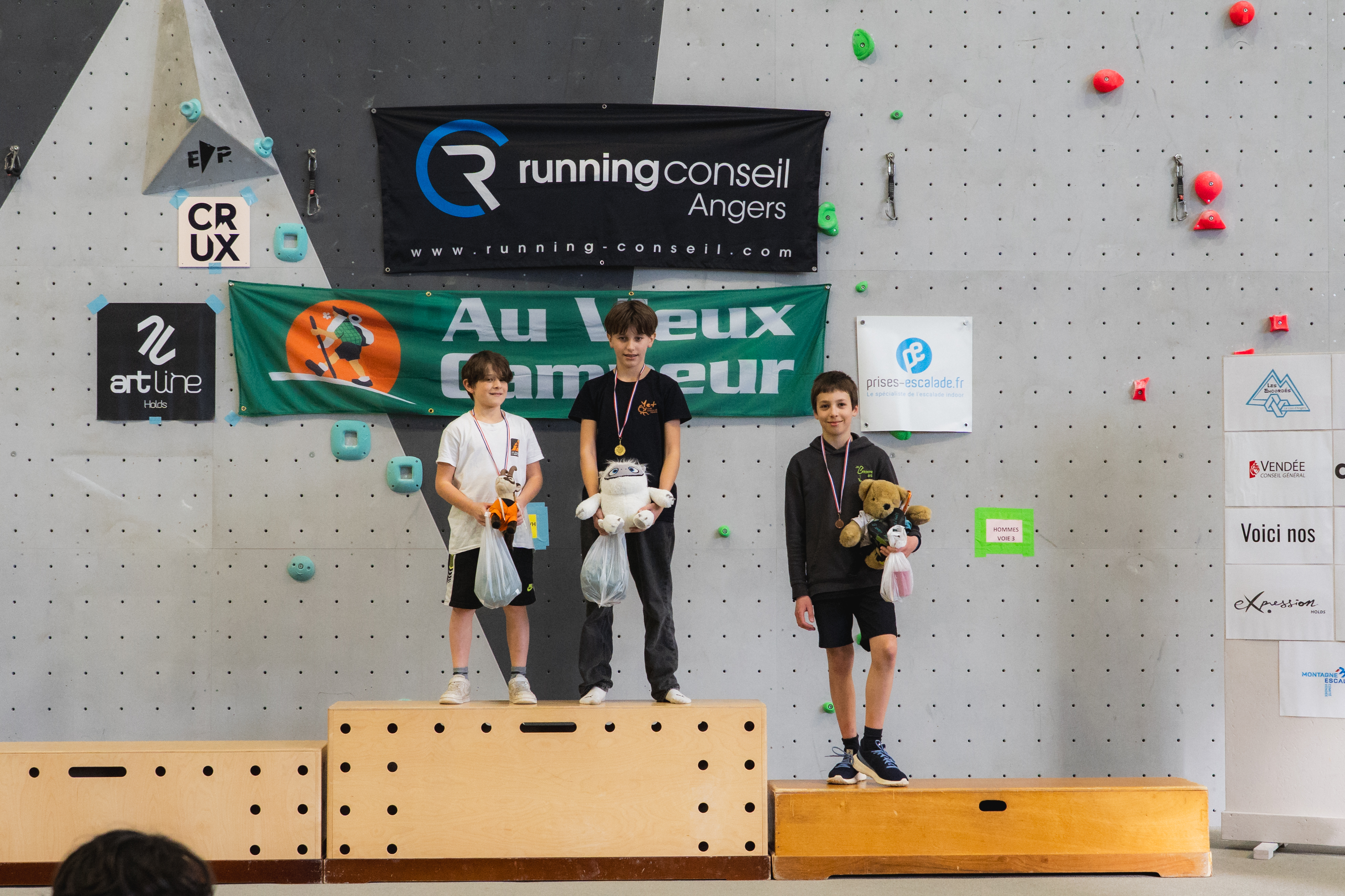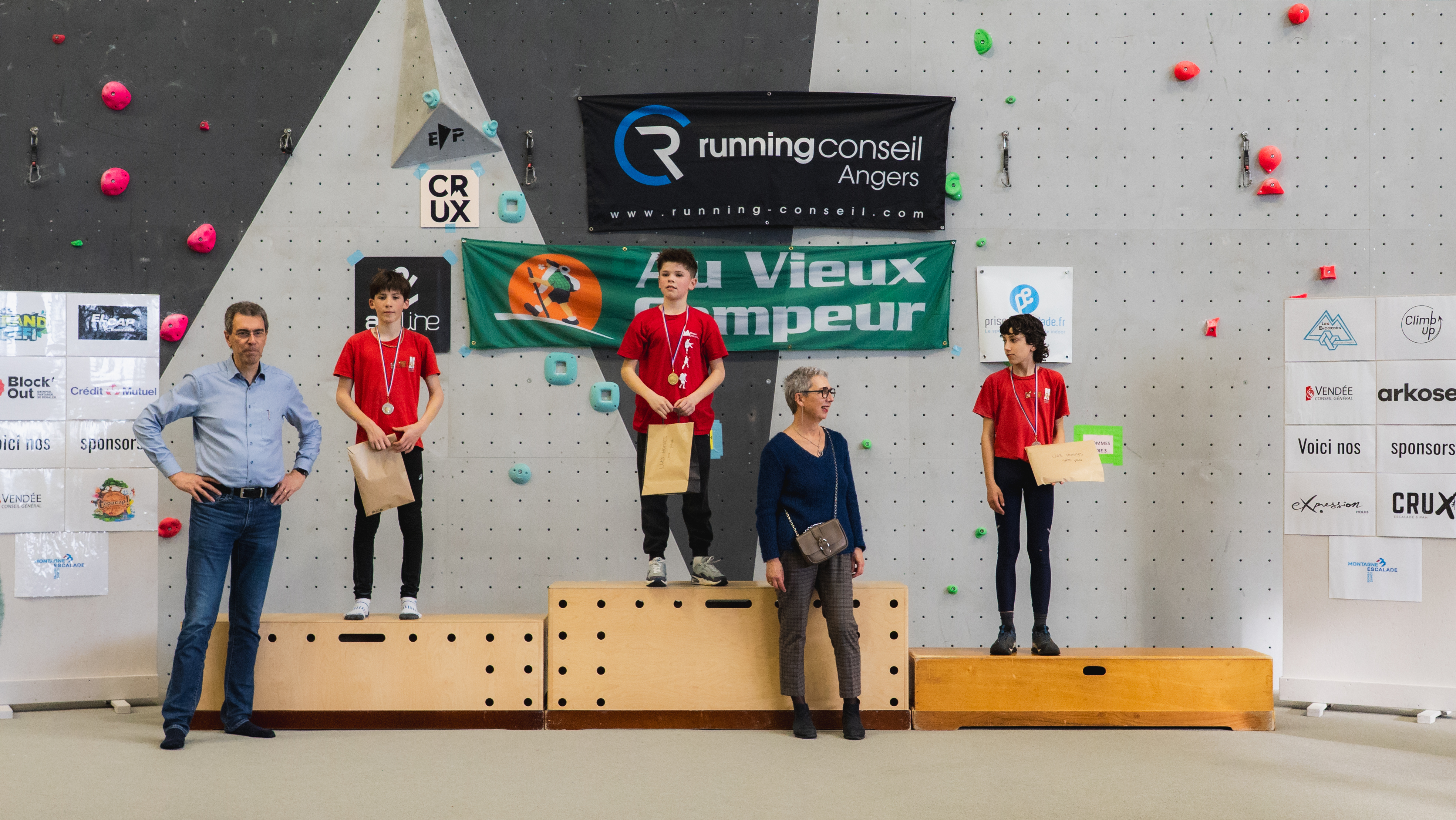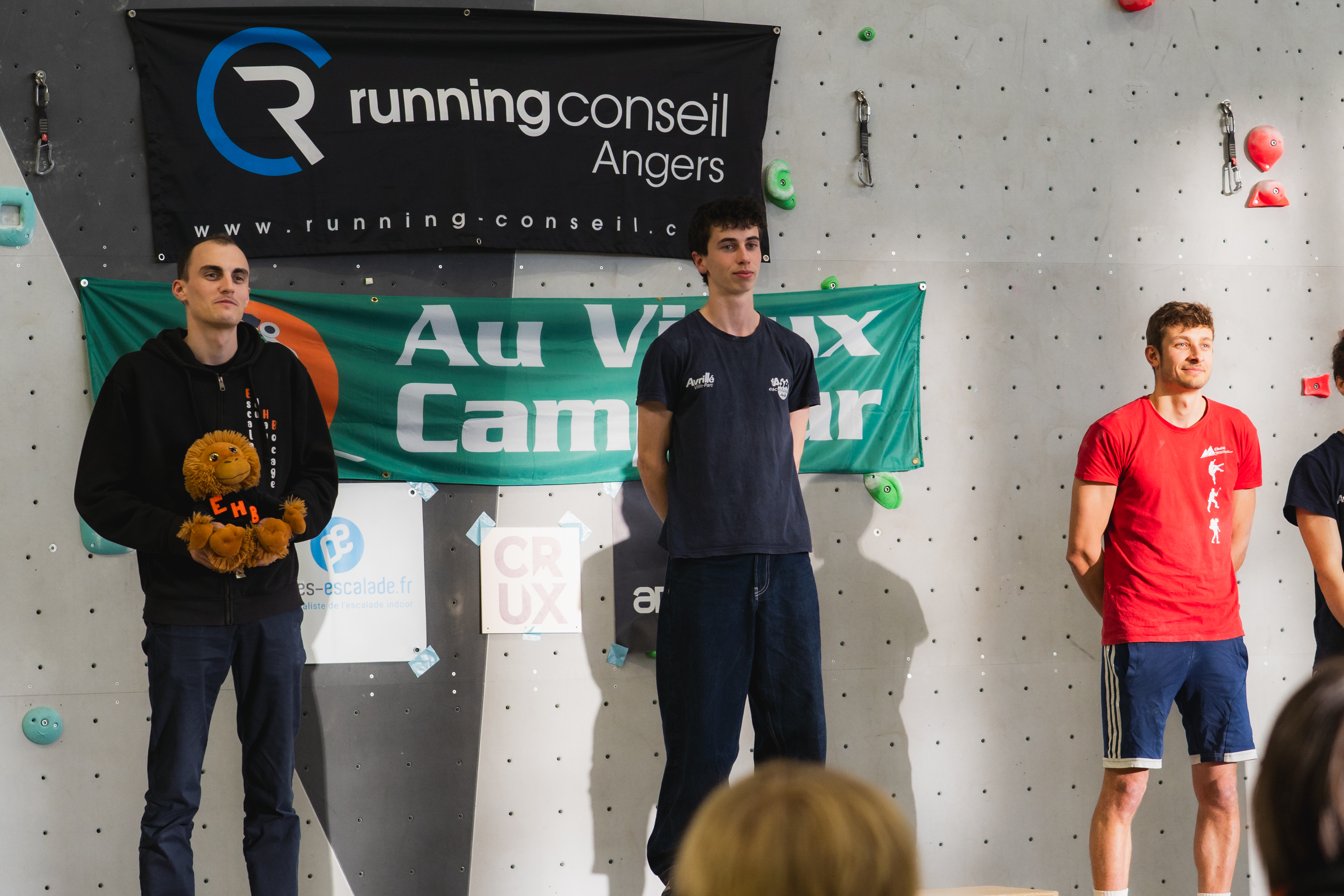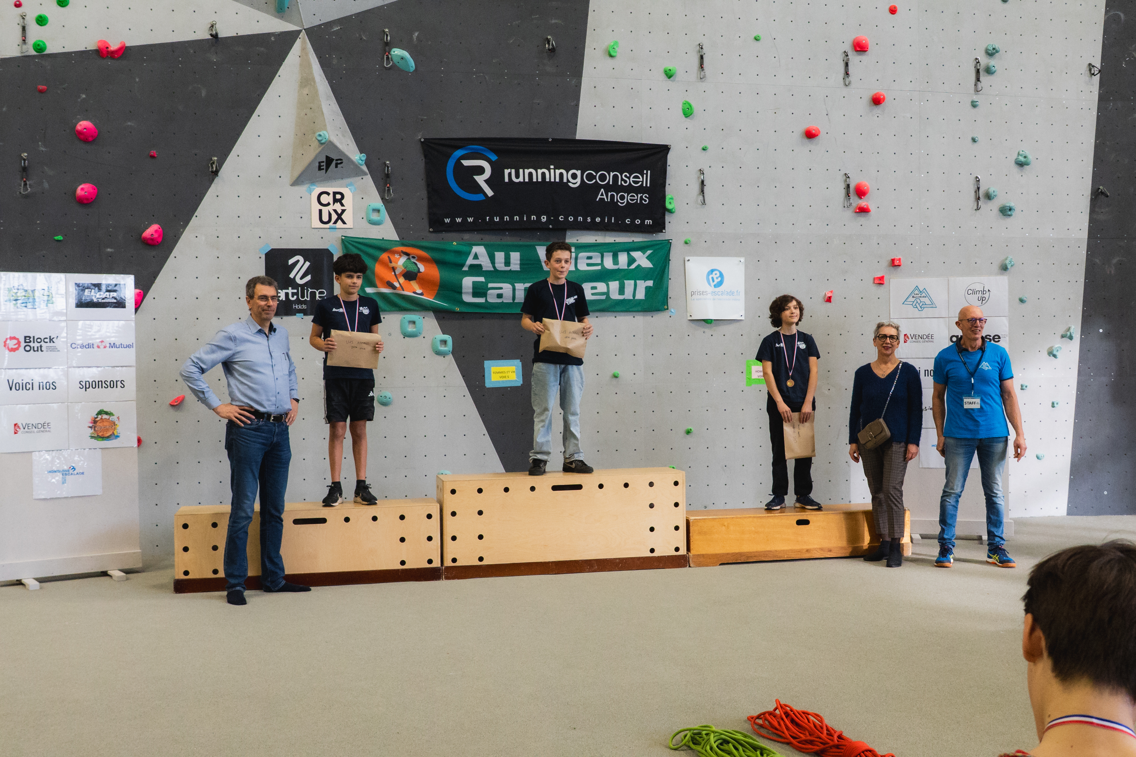 Enfin nous remercions vivement les sponsors qui nous soutiennent : Running conseil, Au vieux campeur, Arkose, Crux, B wall, Block Out Nantes, El Cap, Altissimo, YY vertical, Decathlon Beaucouzé.