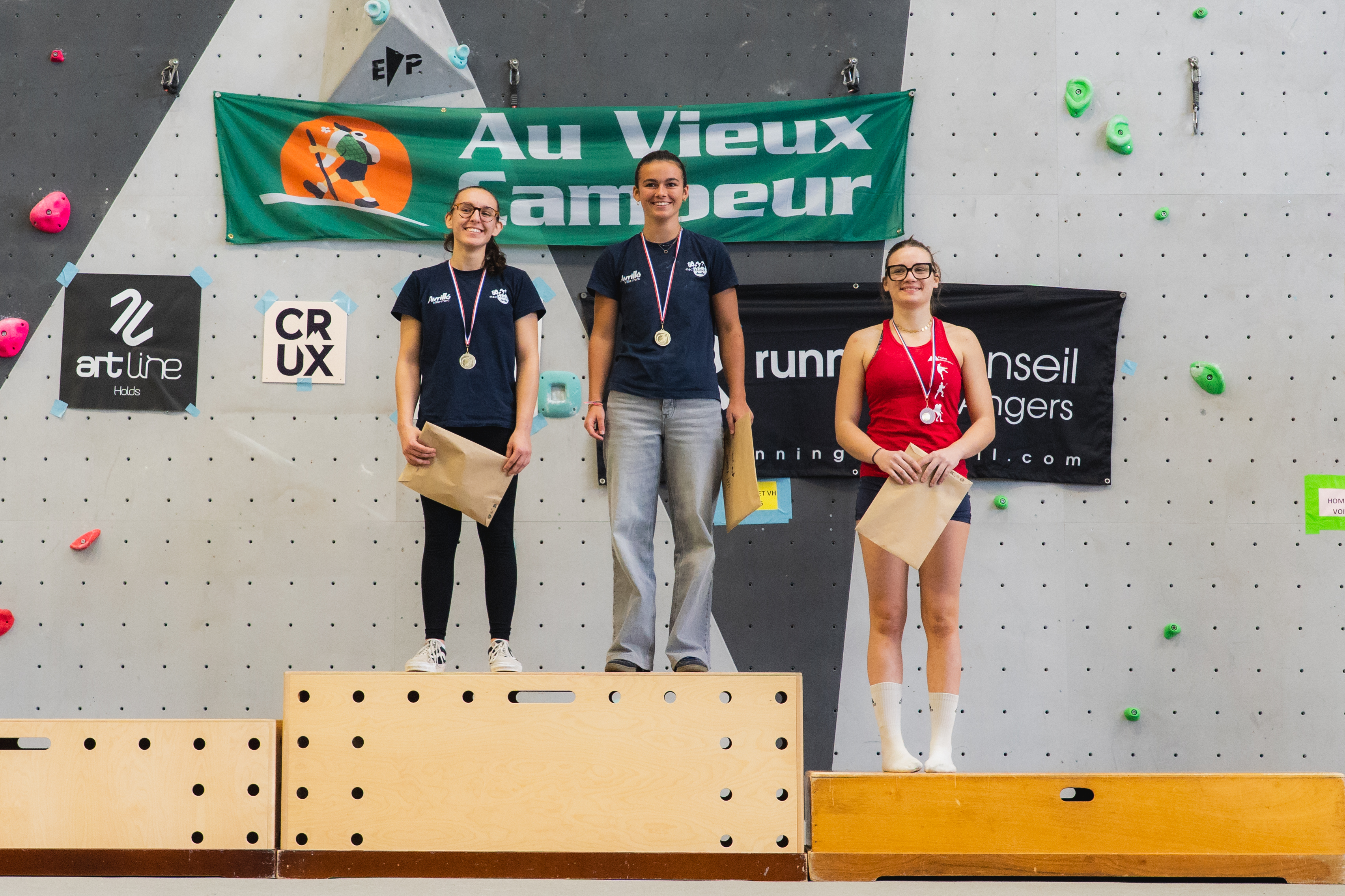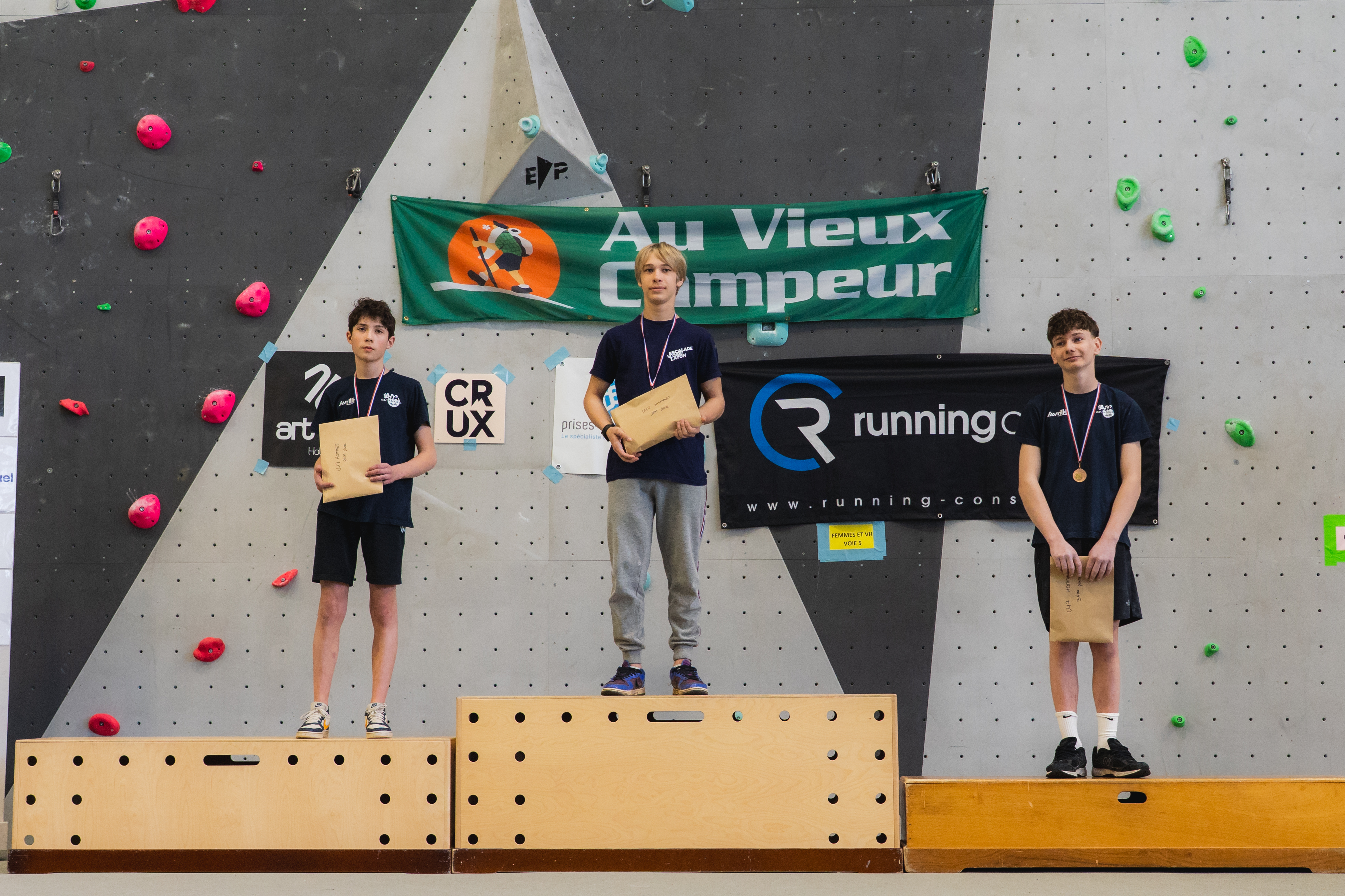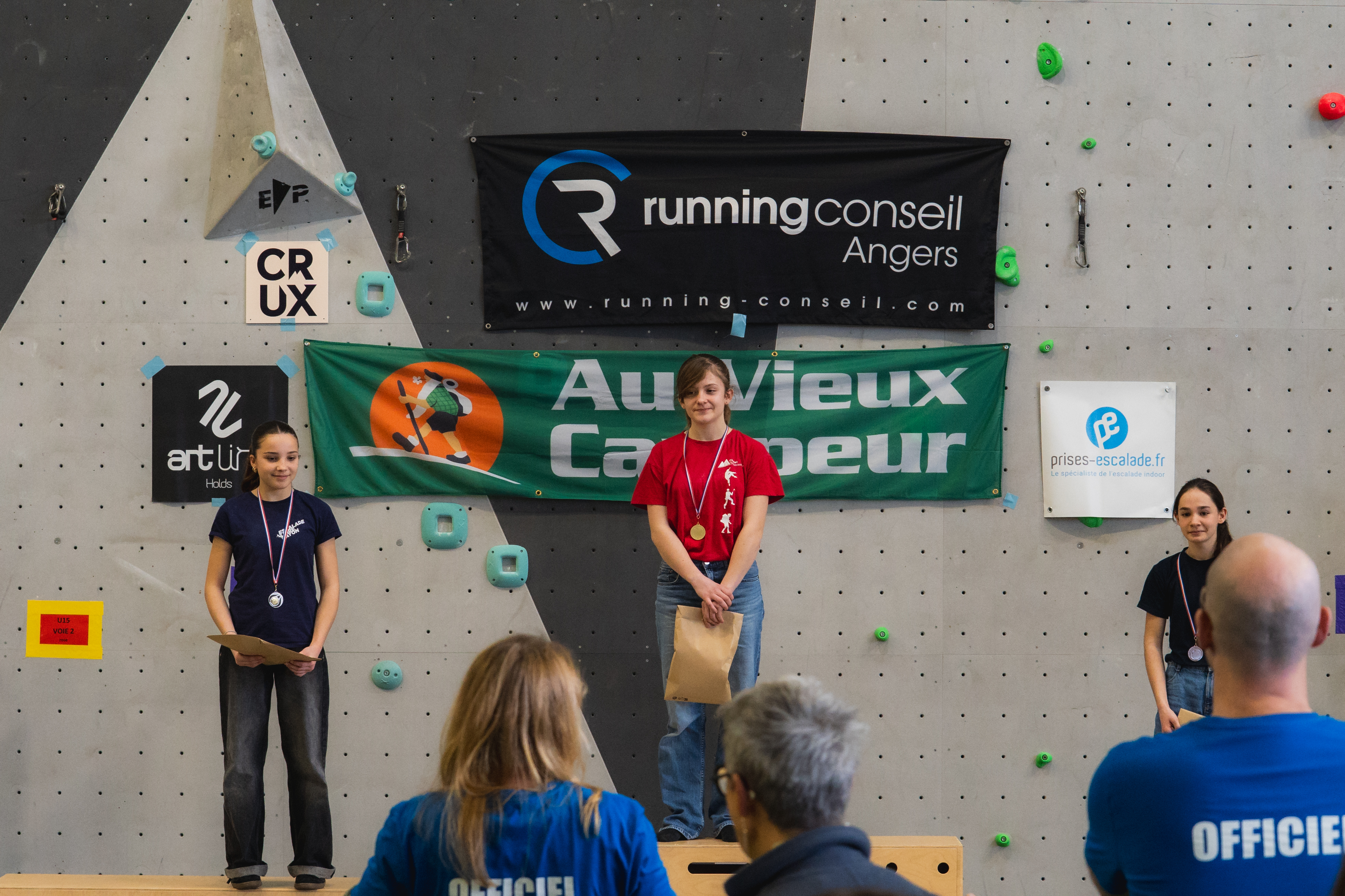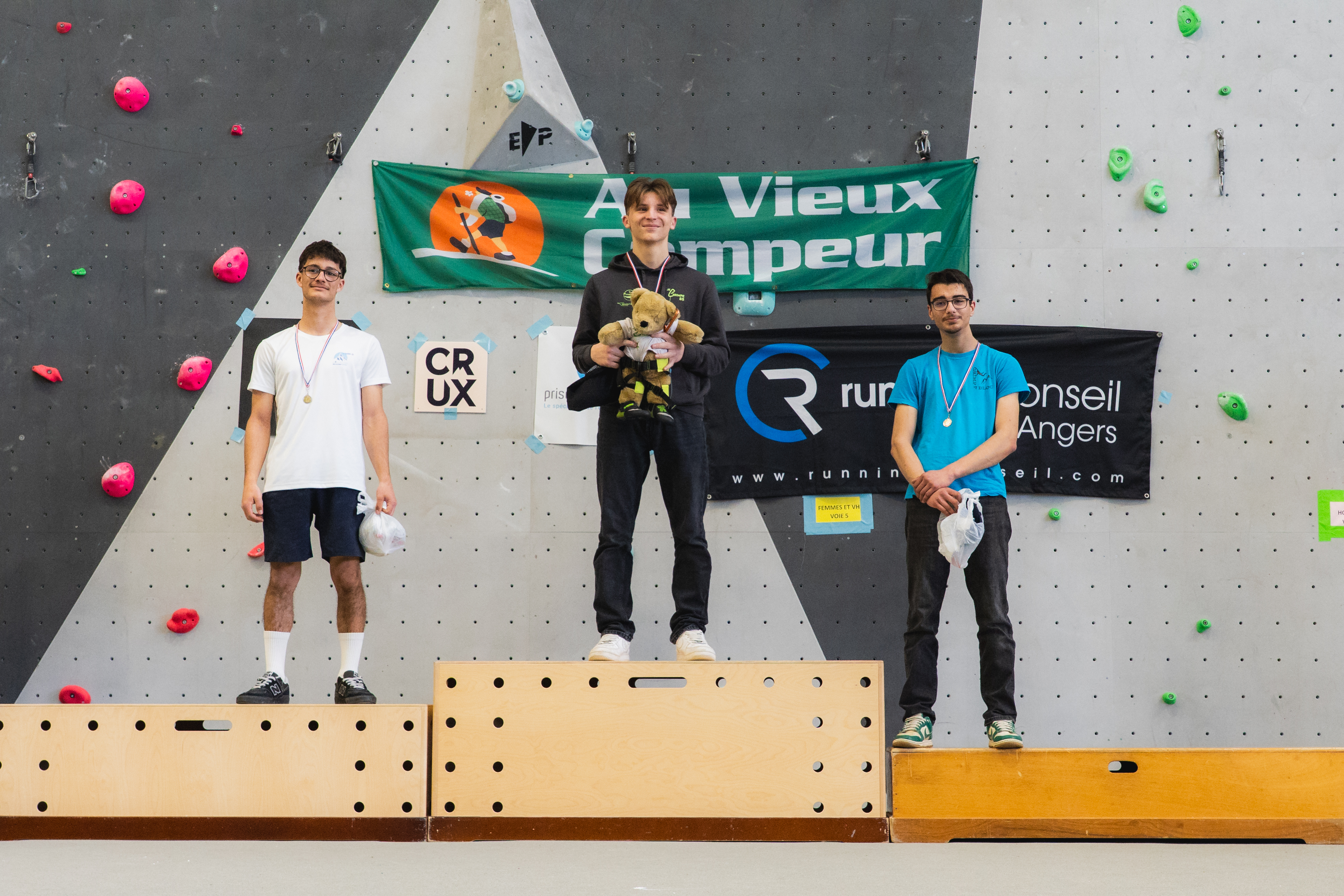 Enfin nous remercions vivement les sponsors qui nous soutiennent : Running conseil, Au vieux campeur, Arkose, Crux, B wall, Block Out Nantes, El Cap, Altissimo, YY vertical, Decathlon Beaucouzé.